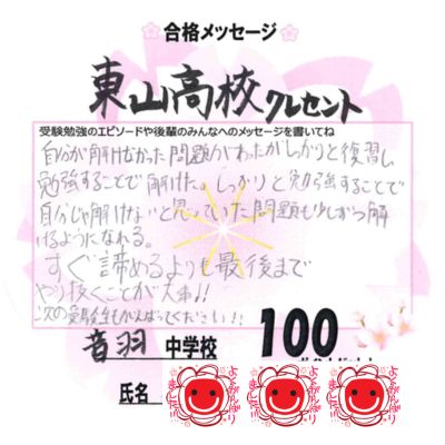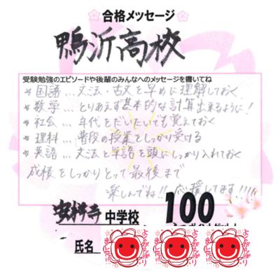 個個塾で頑張って、合格できて本当によかったです。
