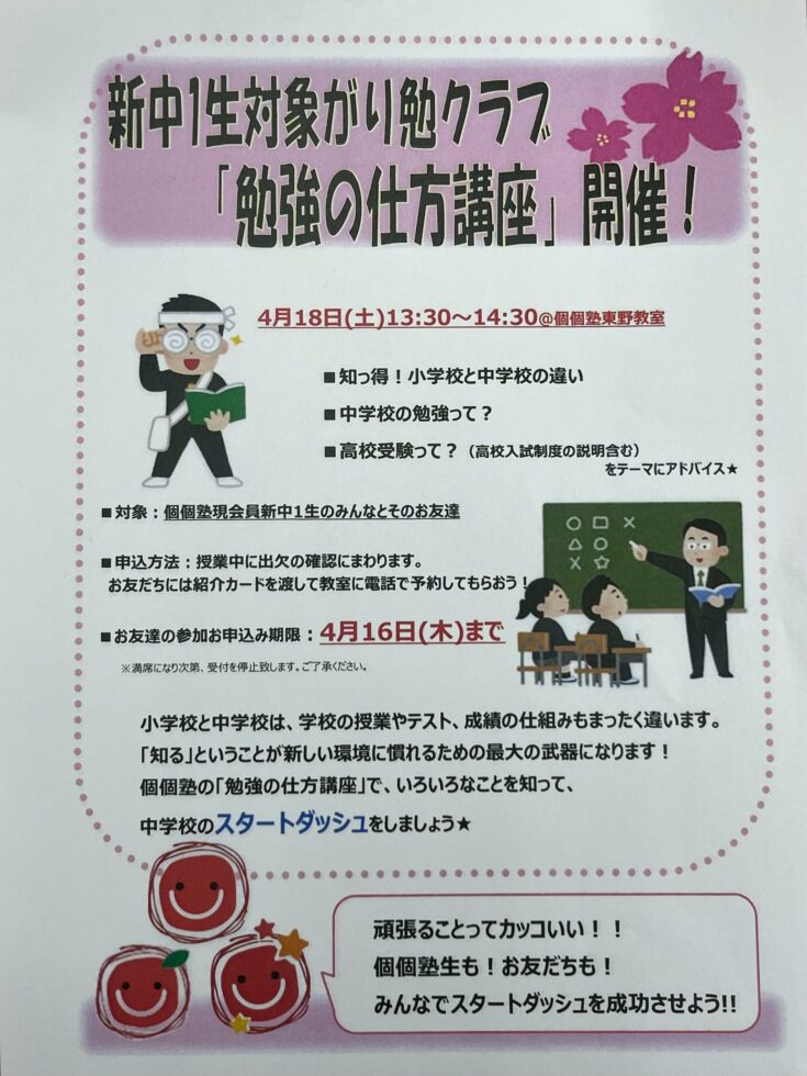 個個塾はいつでも入会金0円※講習会のみの入会の場合は