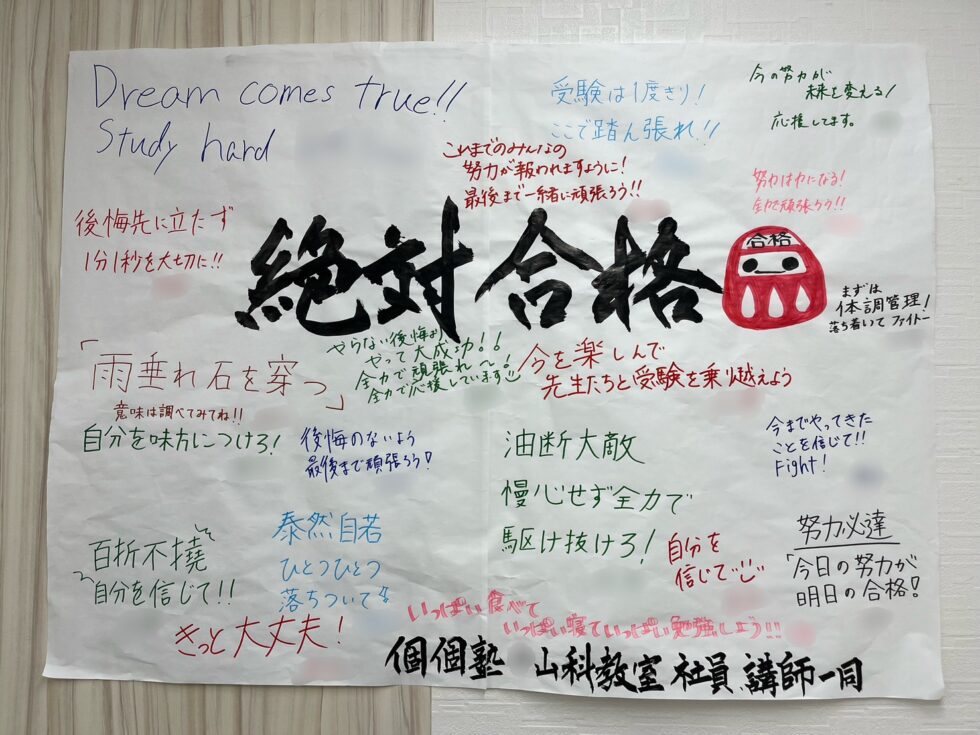 個個塾は山科で一番生徒が多い塾で、「山科区で塾に通う生徒の4人に1人は個個塾生」というデータもあるほどです。個個塾に通えば、違う学校に通っていても一つの仲間。塾を通じて一緒に頑張る友達に出会いませんか。