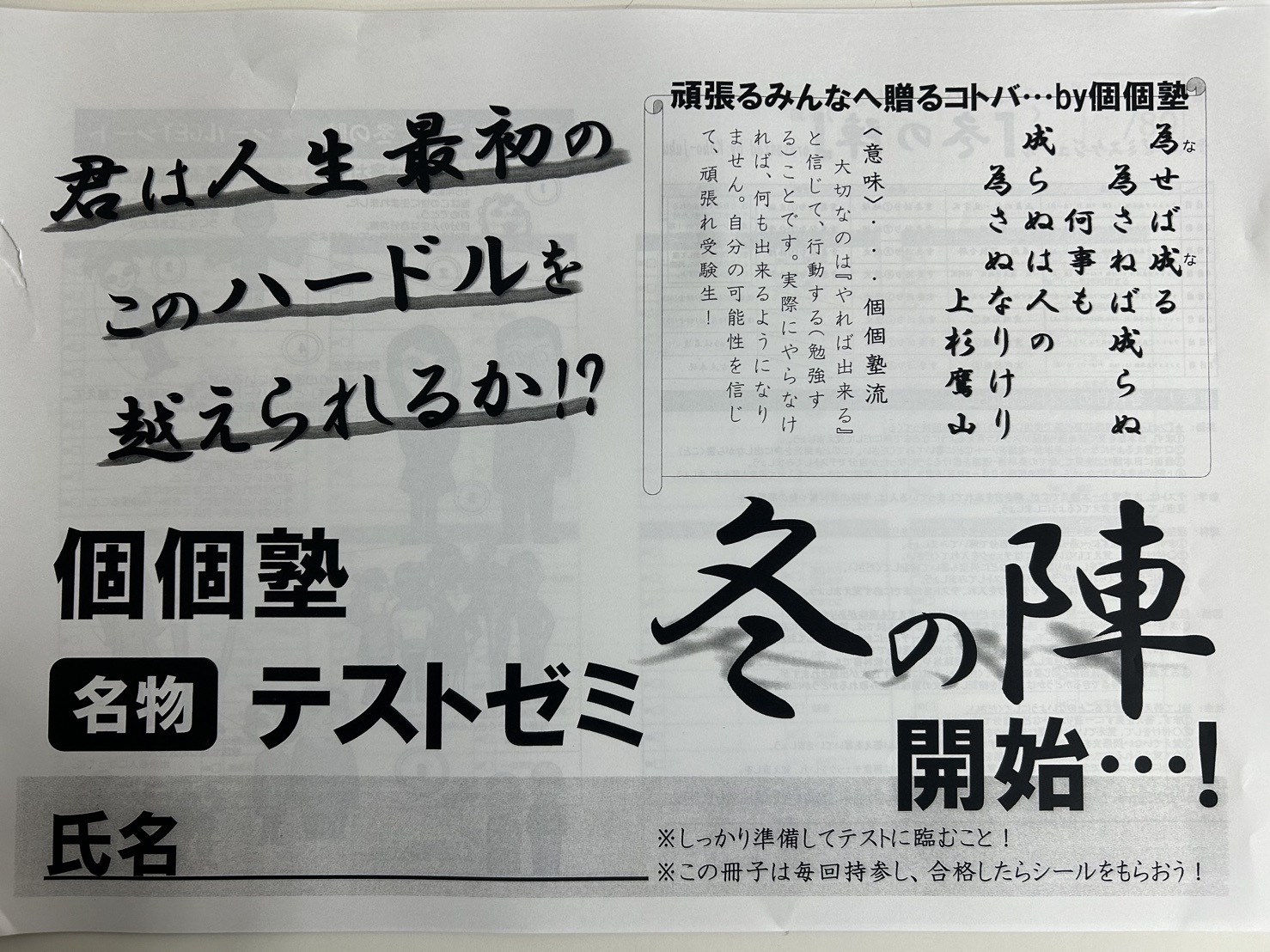 こんにちは✨個個塾六地蔵教室です! さて、個個塾での今年の通常授業が終わり、明日から冬期講習が始まります⛄ 夏休み同様また、あいつがやってきます。。。 そうです。冬休みの宿題です …