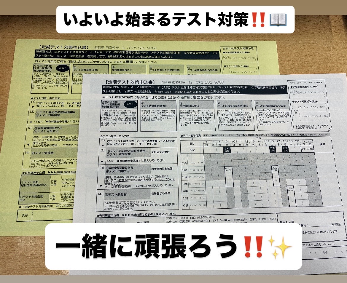 “ご入学・ご進級おめでとうございます✨新学期にすぐテストがあるの、知ってますか…?#音羽中#安祥寺中#花山中#大宅中#音羽小#大宅小#音羽川小” の続きを読む