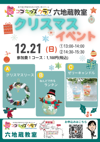 この冬、ココキッズクラブ六地蔵教室では、昨年に引き続き『クリスマスイベント』を開催いたします!