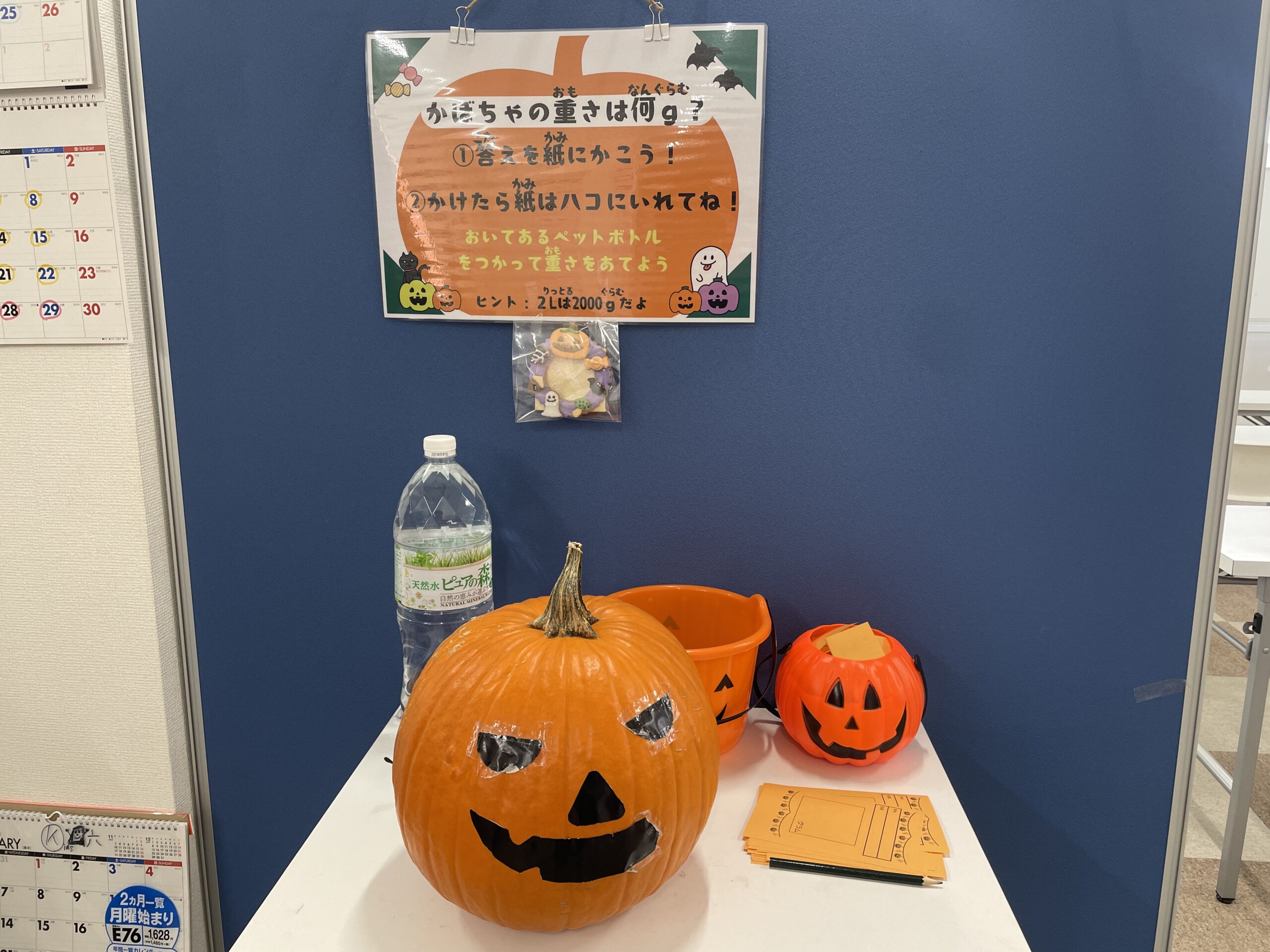 まずは入って一番に目につくかぼちゃの重さ当て大会!!✨