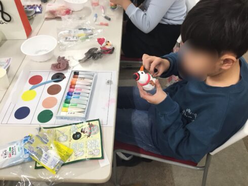 ねんどに絵具を混ぜて光るランタンを作りました!