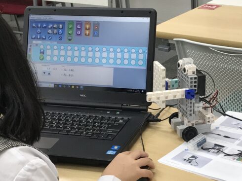 自分でロボットを組み立て、プログラムを組んで動かしていきます。
